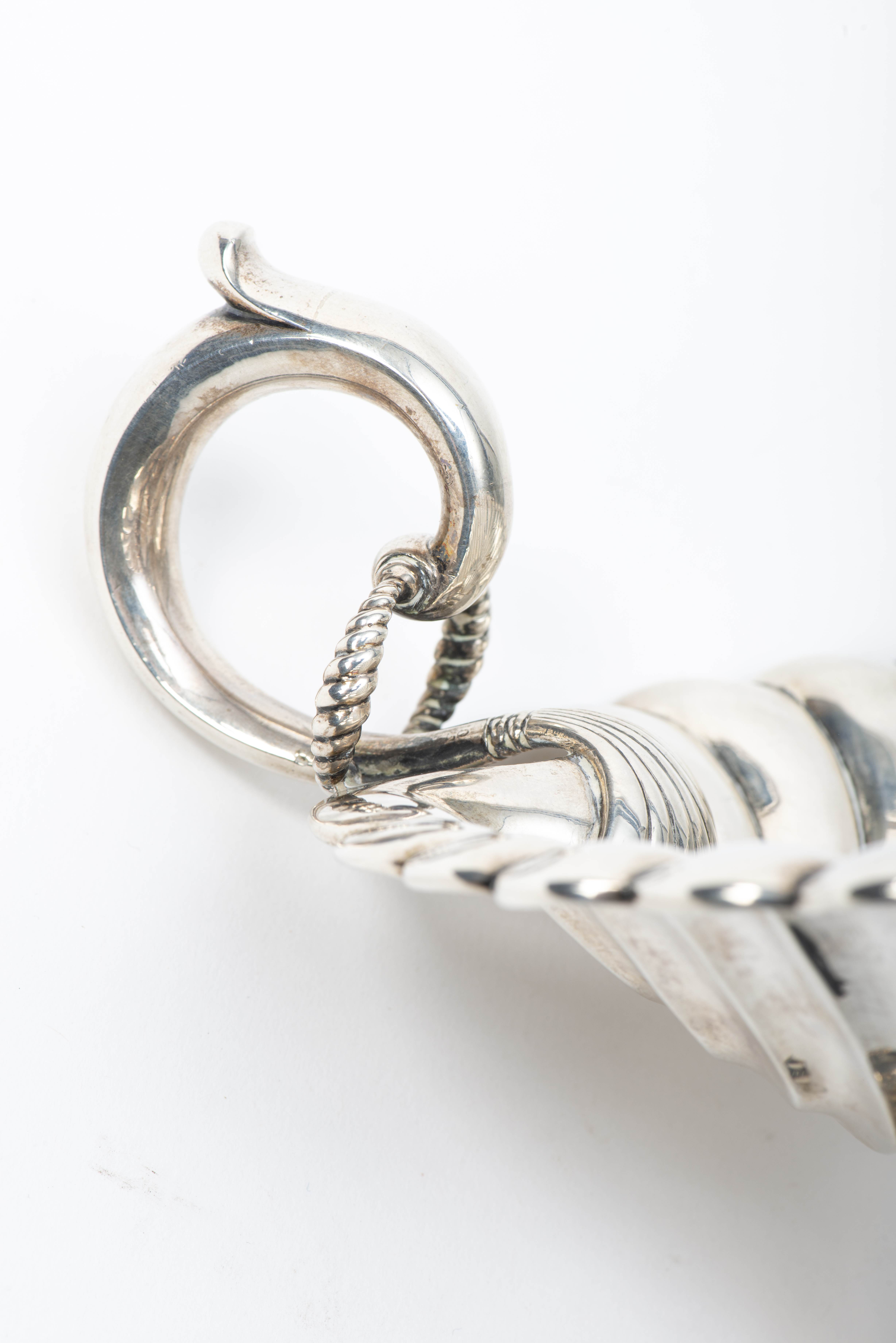 Elégante coupelle sur piédouche à motif de feuille en argent français .800, (datation entre 1879 - 1973).