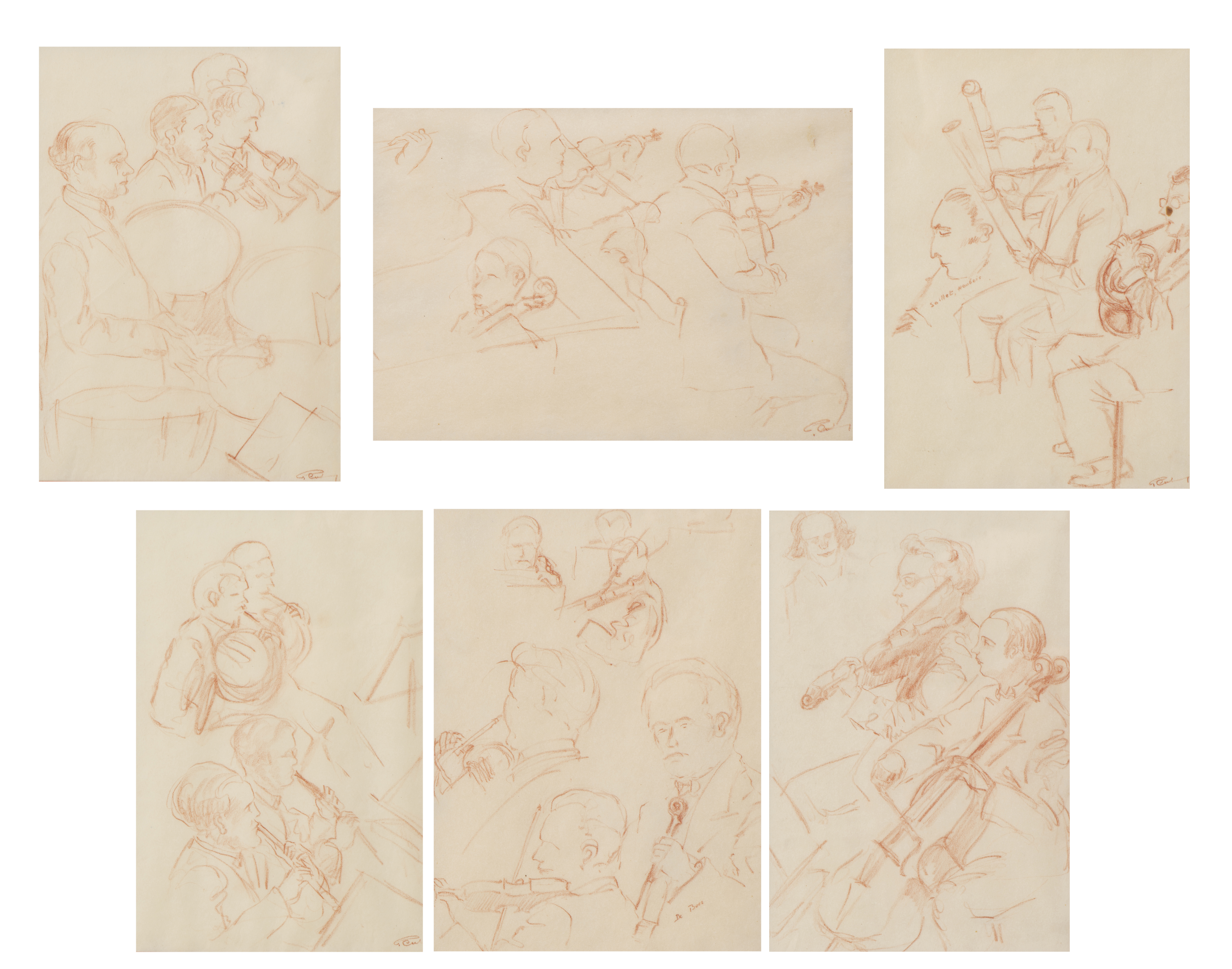 Frédéric Louis Théodore PASCHE (1879-1965), six dessins à la sanguine de musiciens