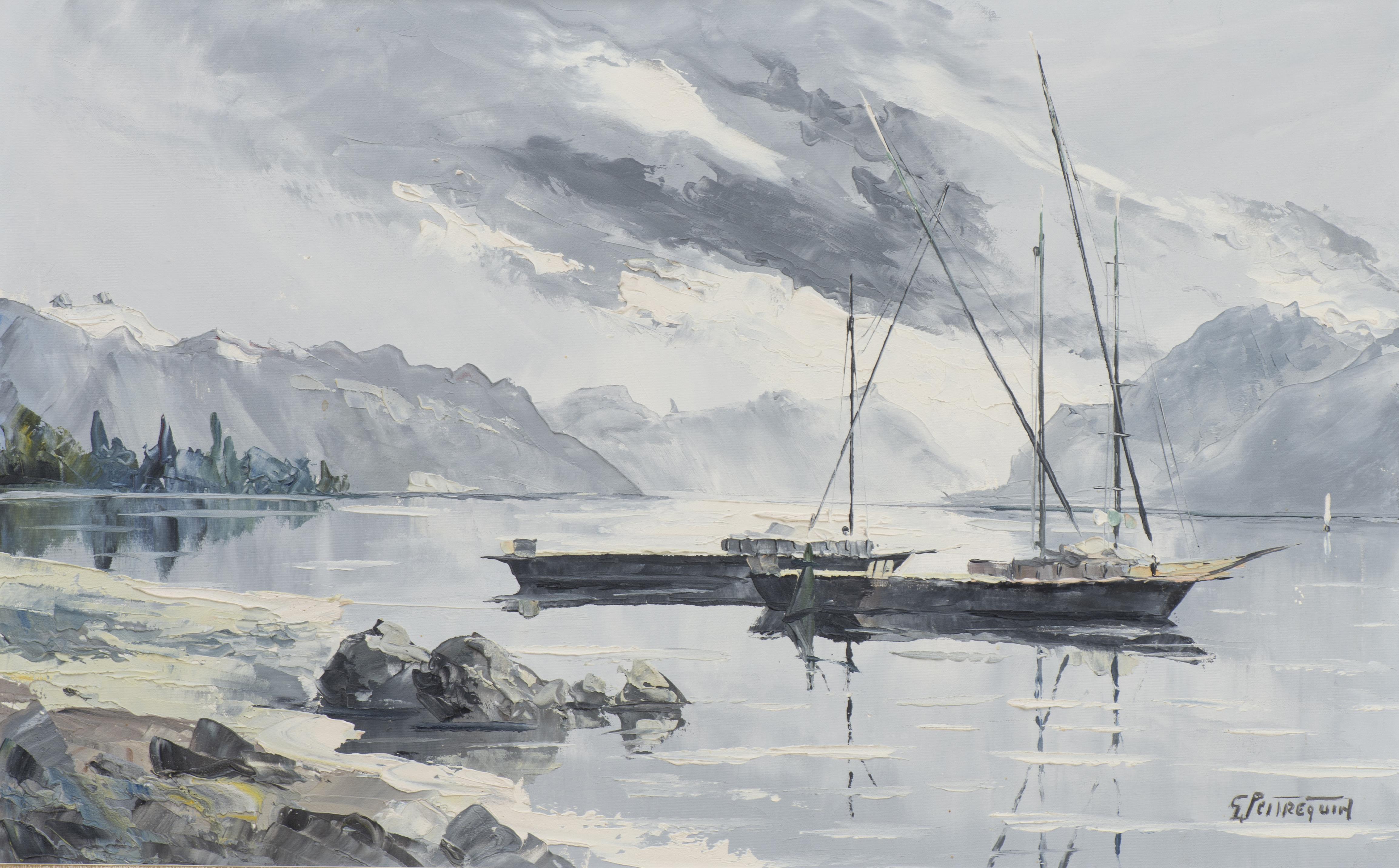 Gaston Robert PEITREQUIN (1915-1990), "Vue Lacustre", huile sur toile, signé en bas à droite