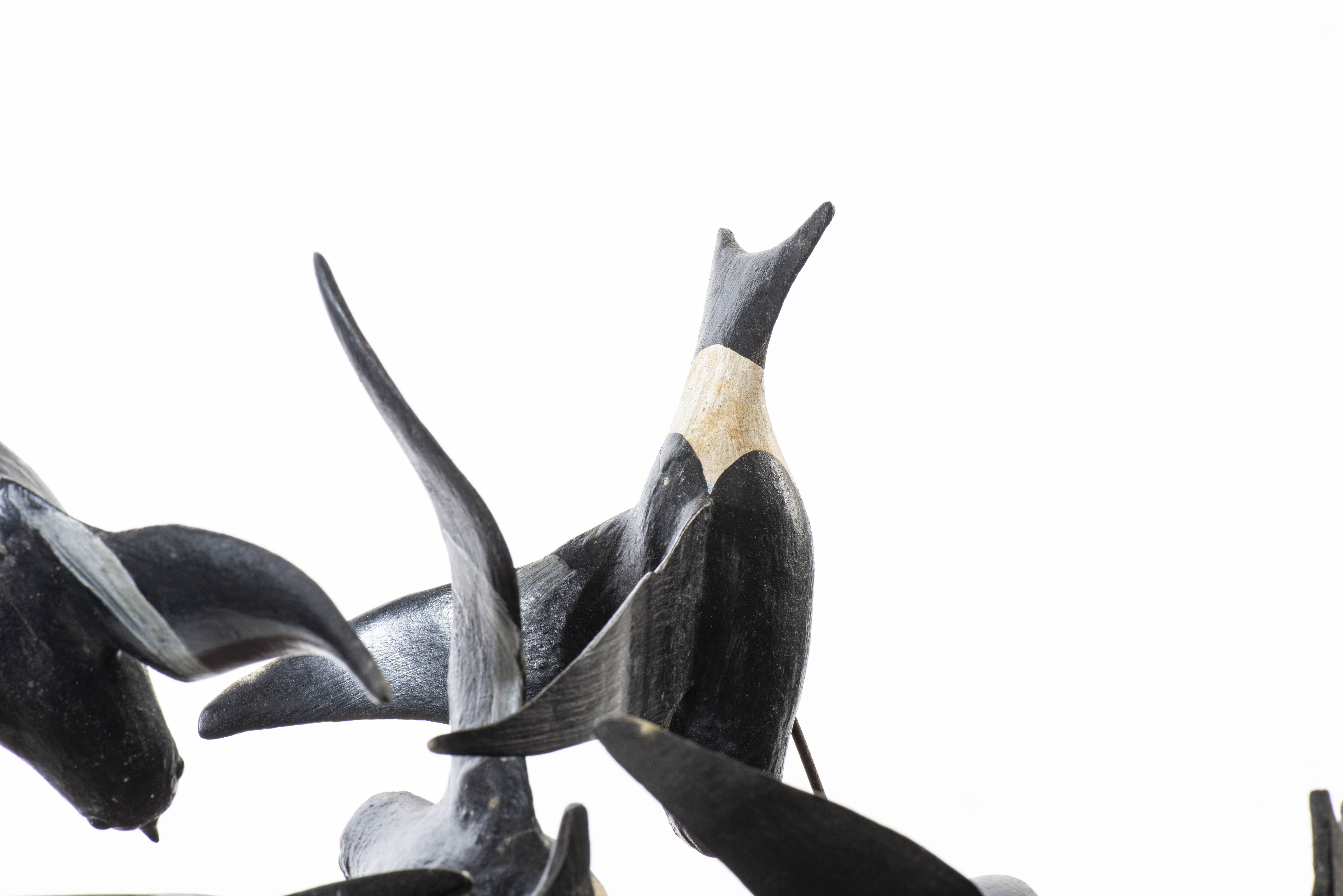 Guy TAPLIN (1939) XXe, " Five Storm Petrels", Sculpture en bois représentant une volée d'hirondelles. Indistinctement signé/inscrit sur la base.