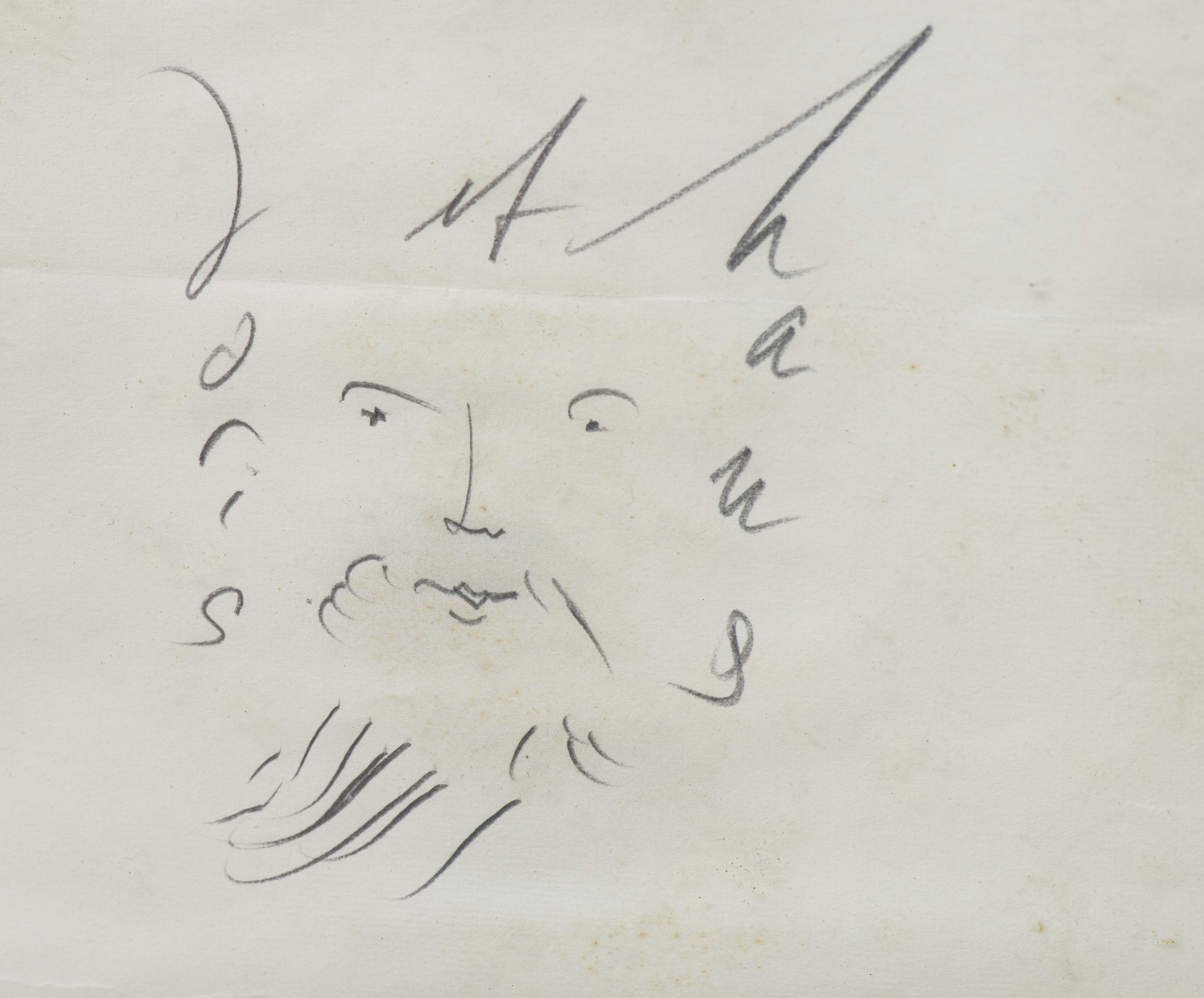 Hans Erni (1909-2015), "Le Minotaure" et "le visage de Laris et Hans", deux dessins, l'un au feutre et l'autre au crayon.