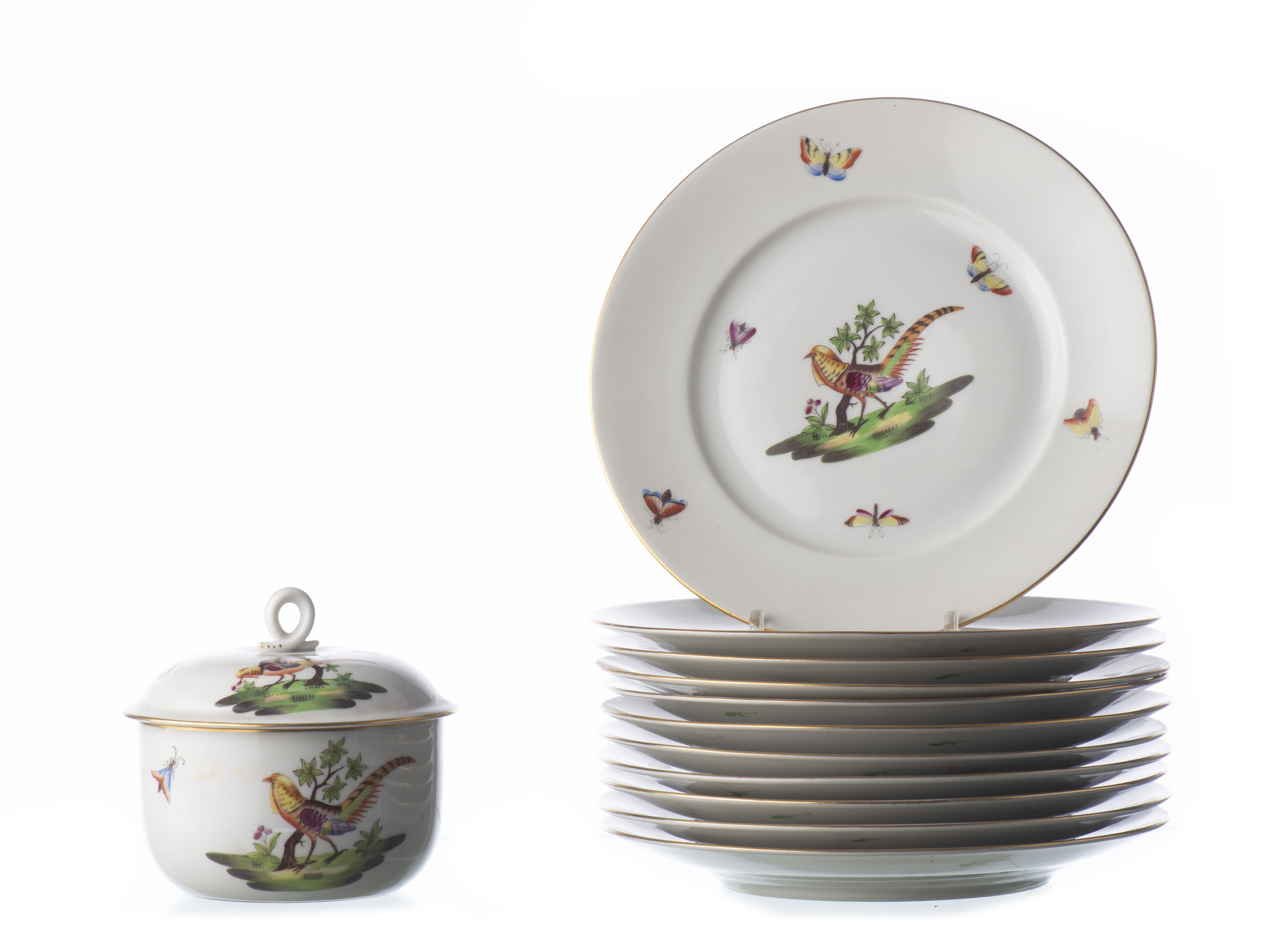 HEREND (XXe) - Service à thé à décor d'"oiseaux de Rothschild" et "paon et papillons"