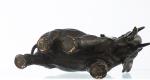 JAPON - Ensemble de deux okimono en bronze à patine brune, Epoque Meiji