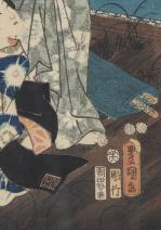 JAPON - Toyokuni III (1780-1865), "Couple au clair de Lune", estampe couleurs