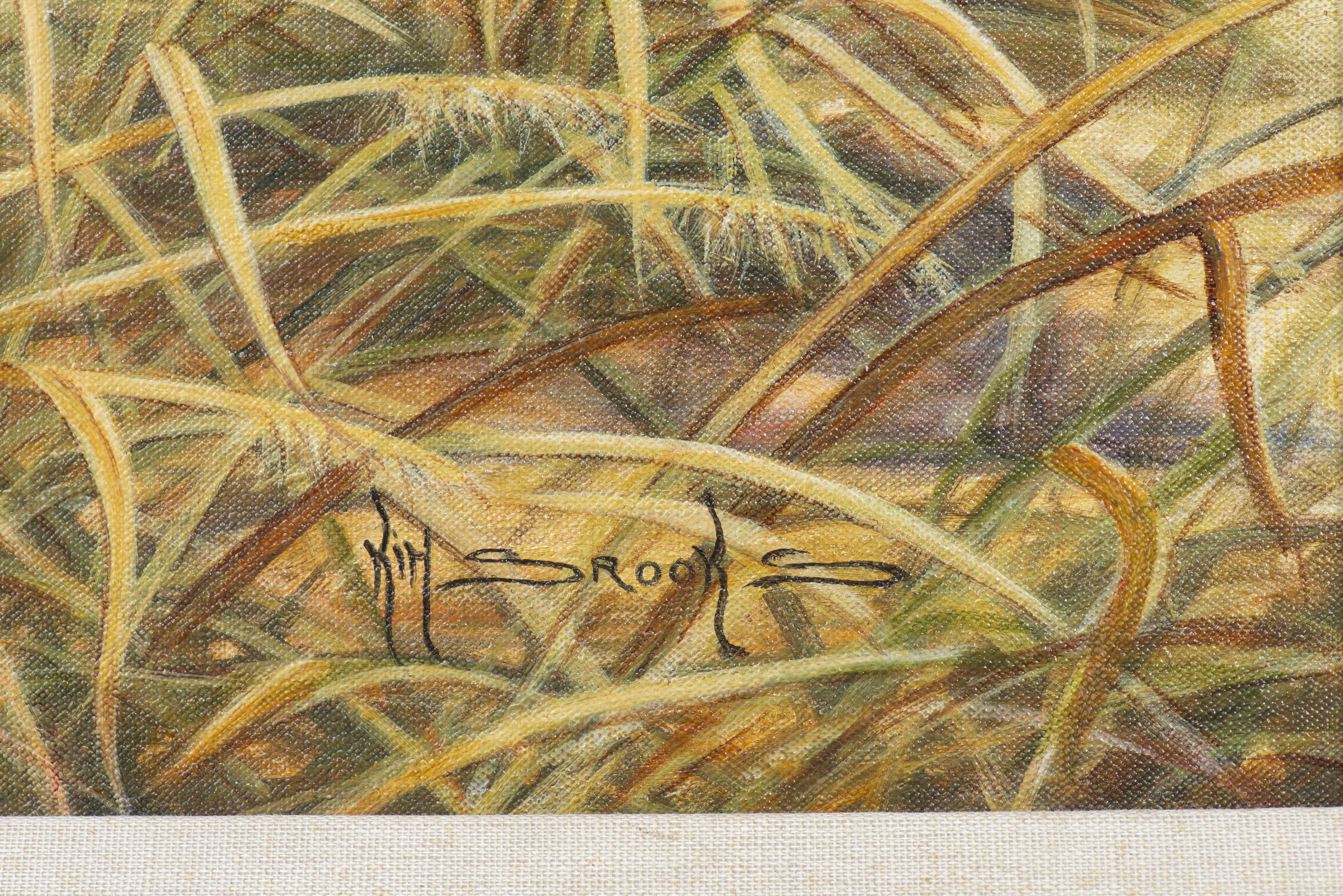 Kim BROOKS (1936), 'Tiger, Seated in Tall Grass', huile sur toile, signé en bas à droite.
