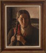Paul Auguste PERRELET (1872-1965), "Jeune fille d'Evolène", huile