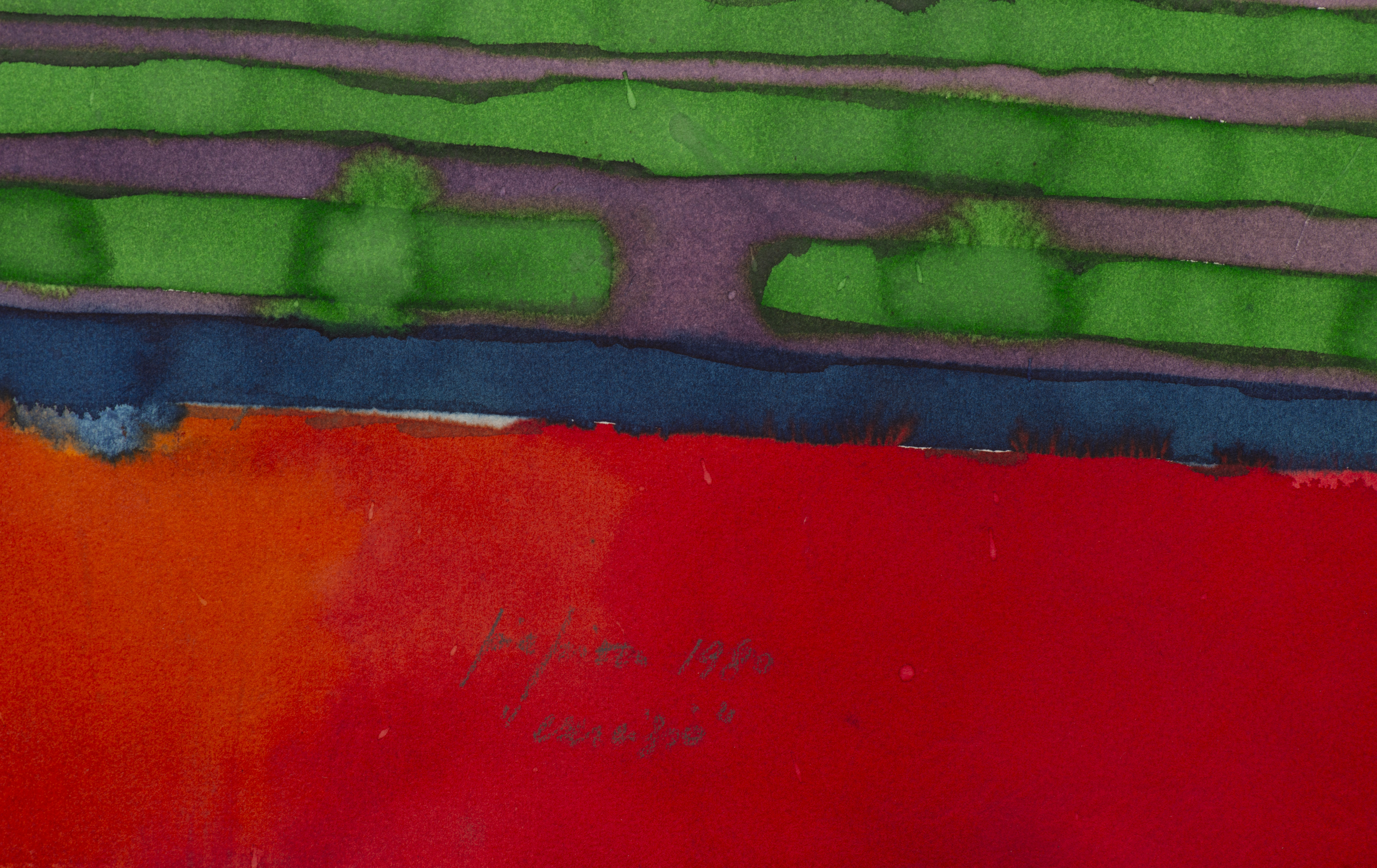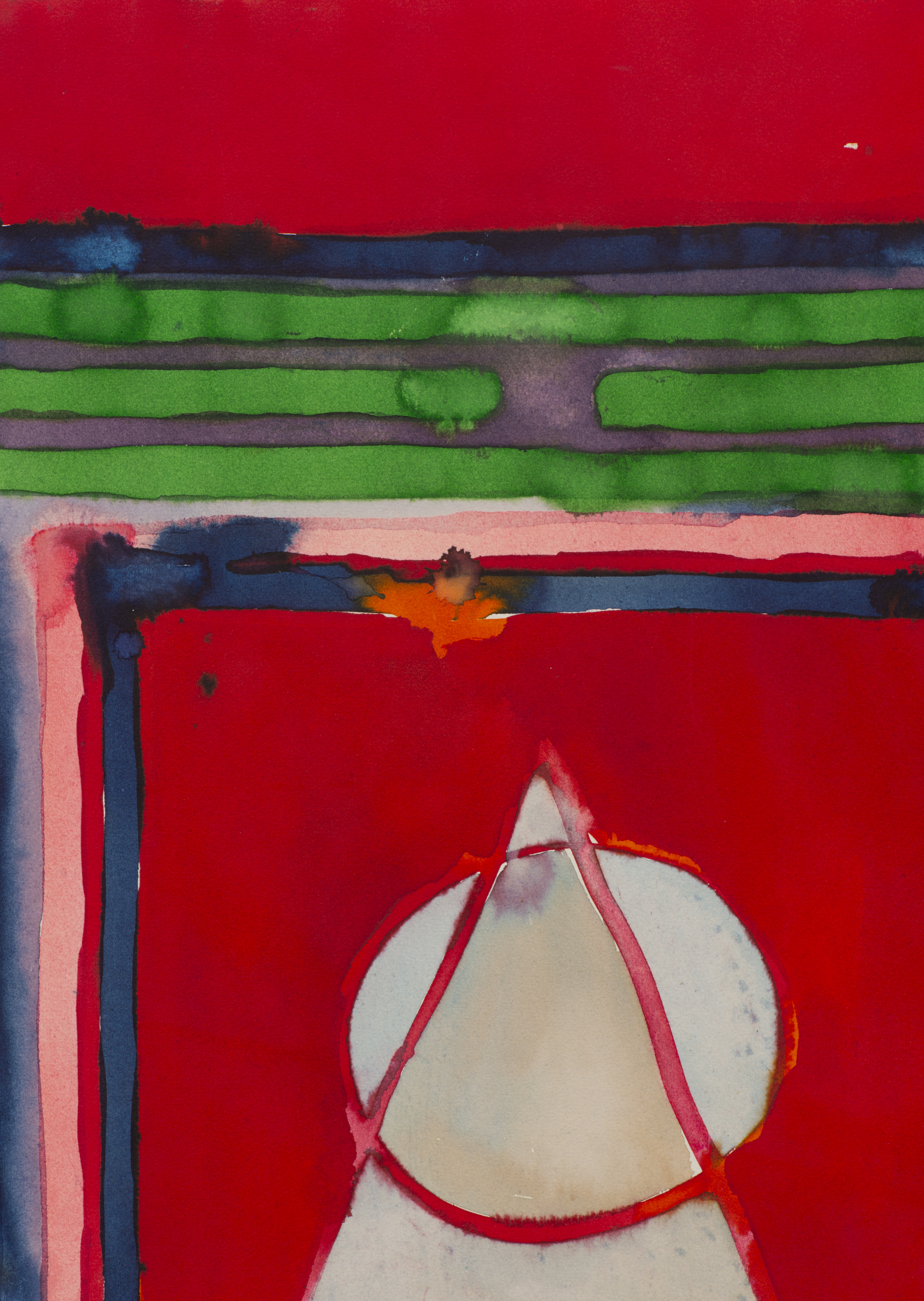 Pia PIZZO (1937-2021), "Esercizio", Composition sur champ rouge, gouache