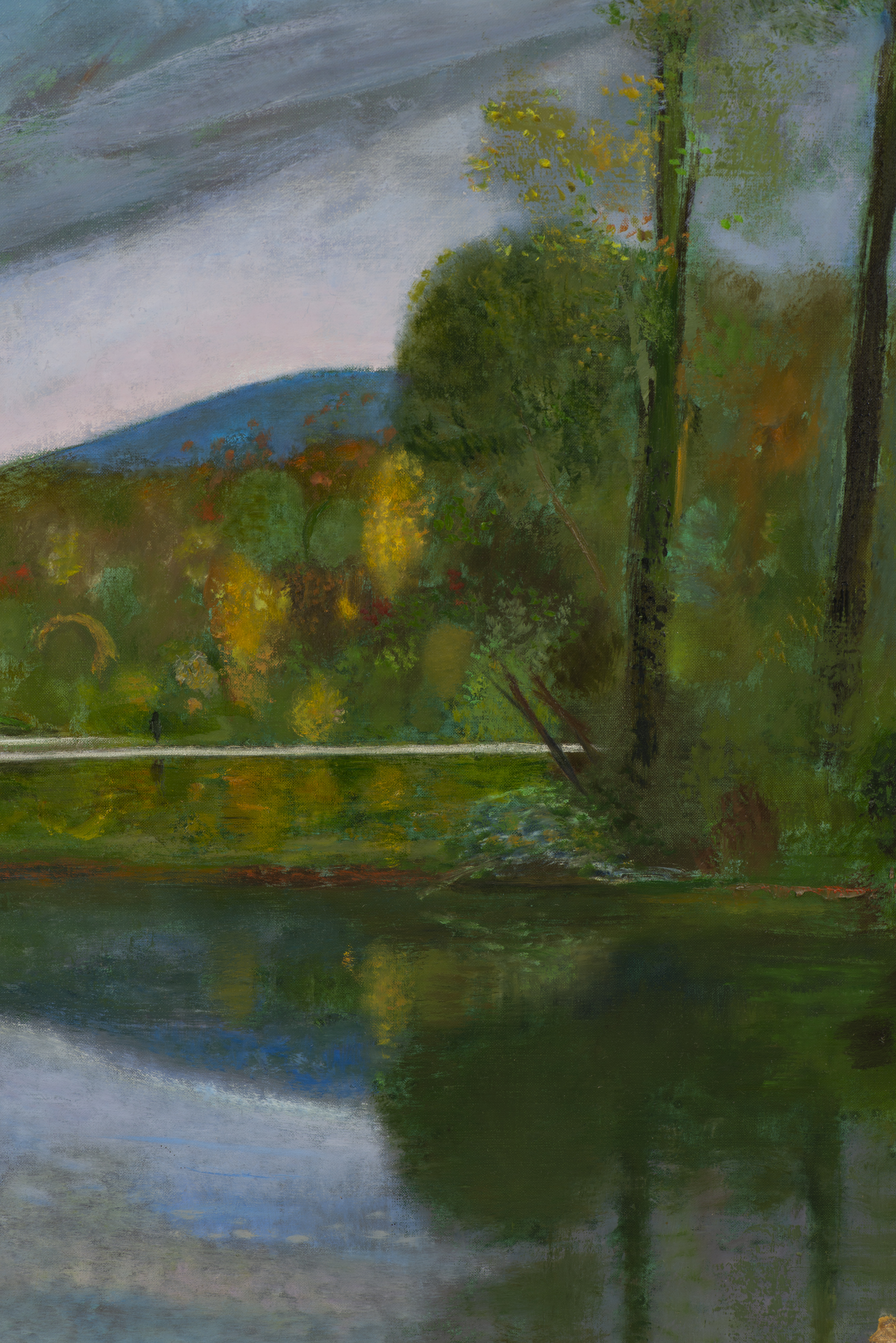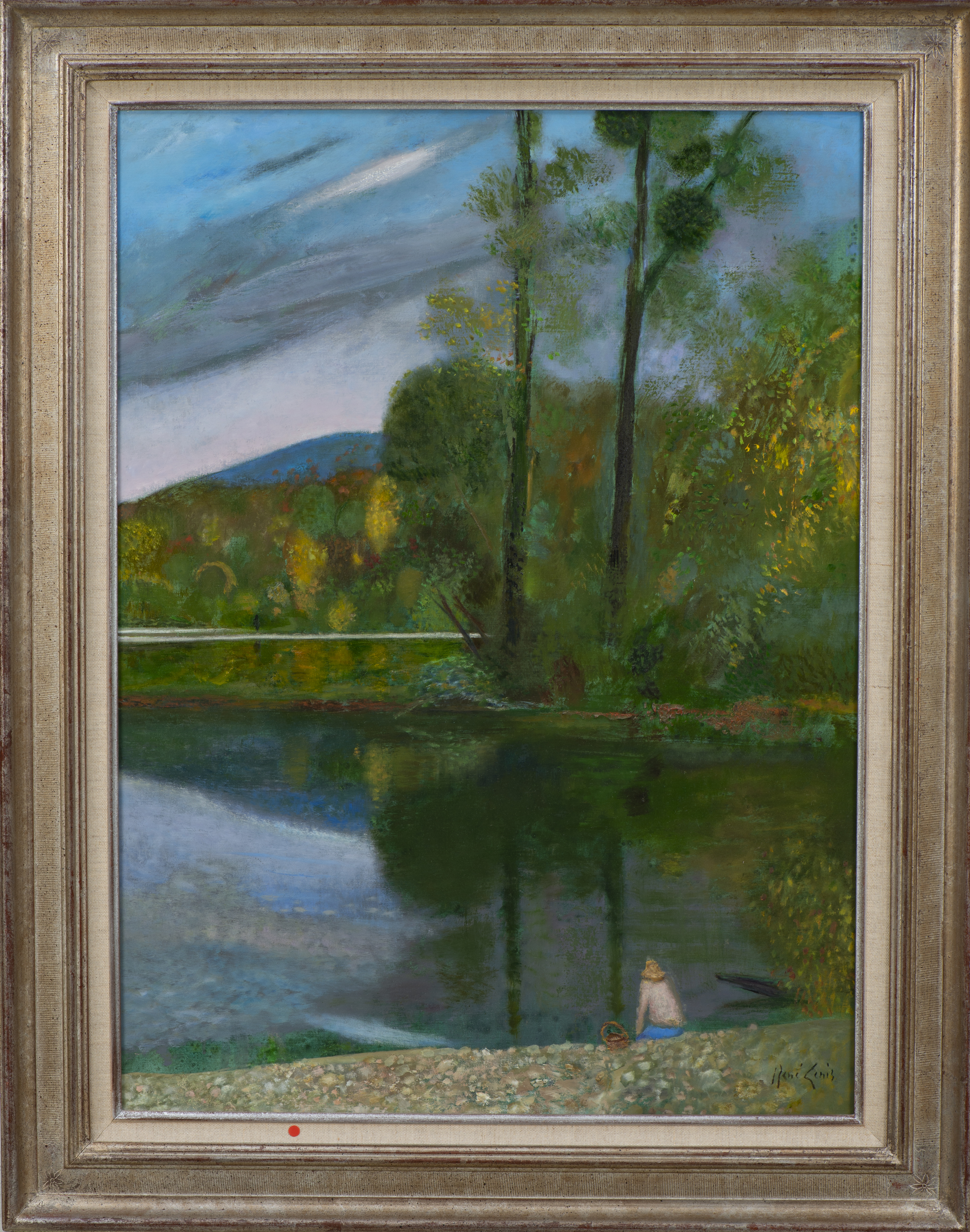 René GENIS (1922-2004), "Paysage la pêche rose (Jura)", huile