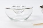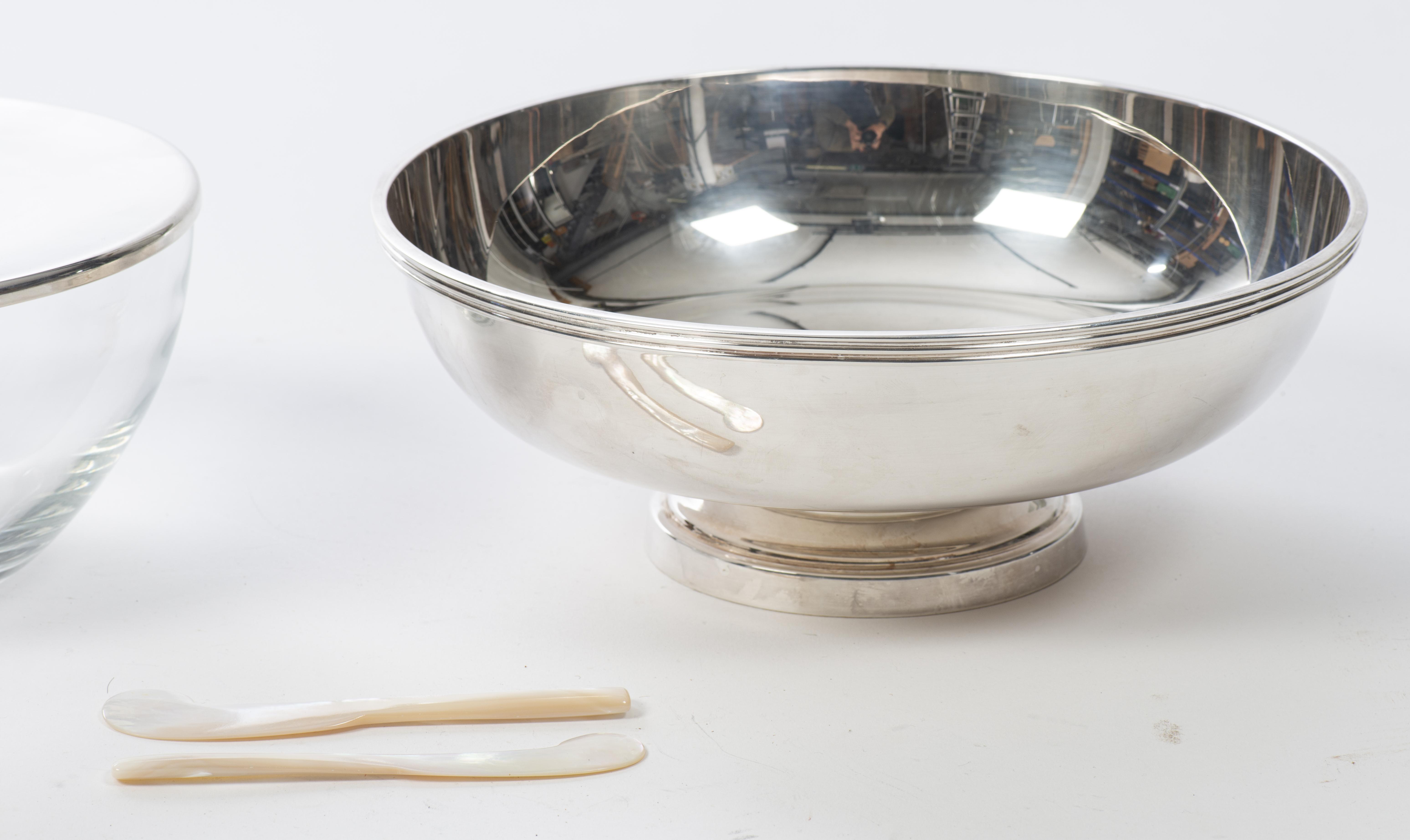 TOUZEAU (Manufacture de), Ensemble composé d'un pot à caviar en métal argenté et verre (avec ses deux couteaux en nacre) (13 x 22 cm)