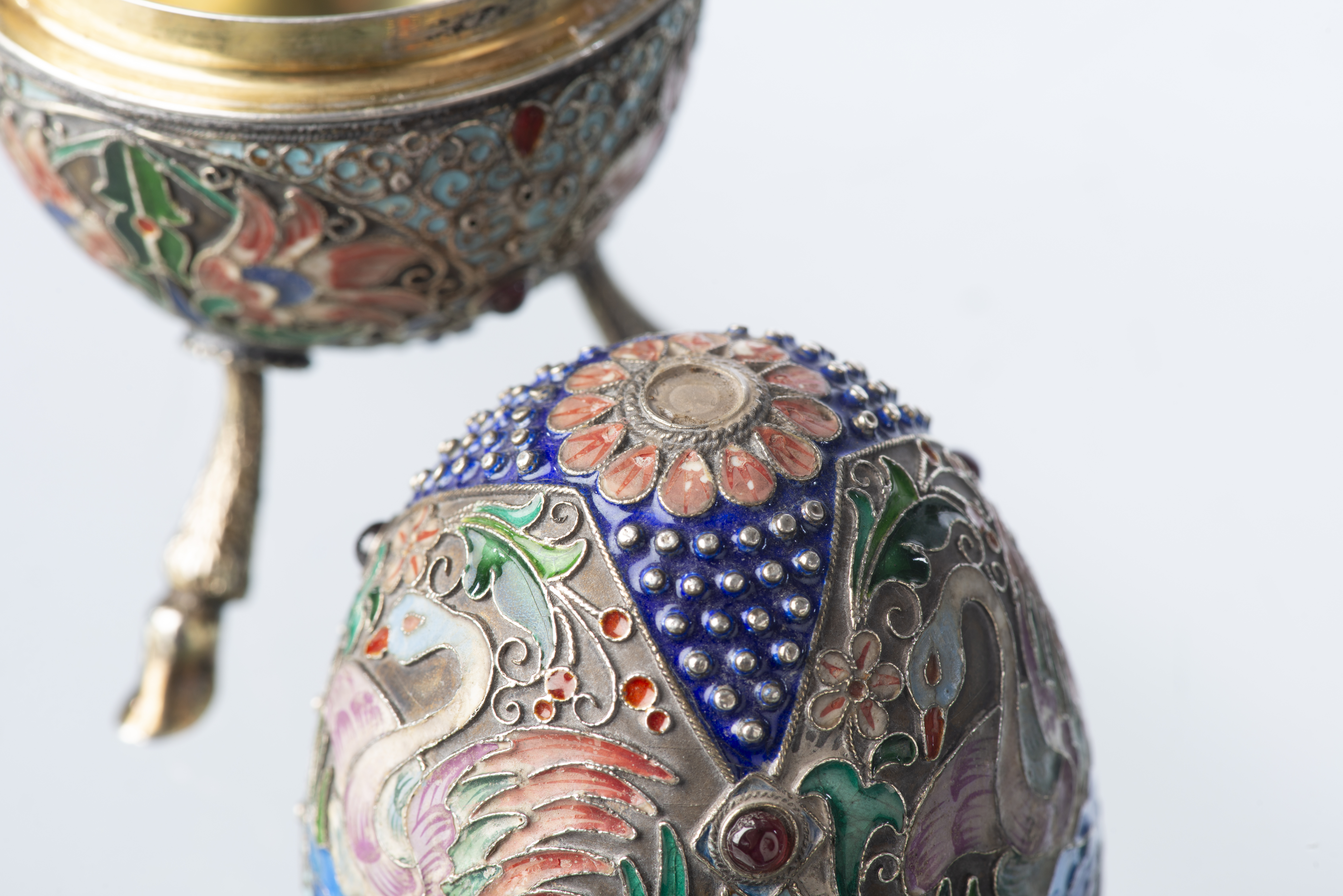 Travail russe XXe - Œuf décoratif en argent vermeil et émail