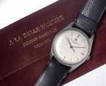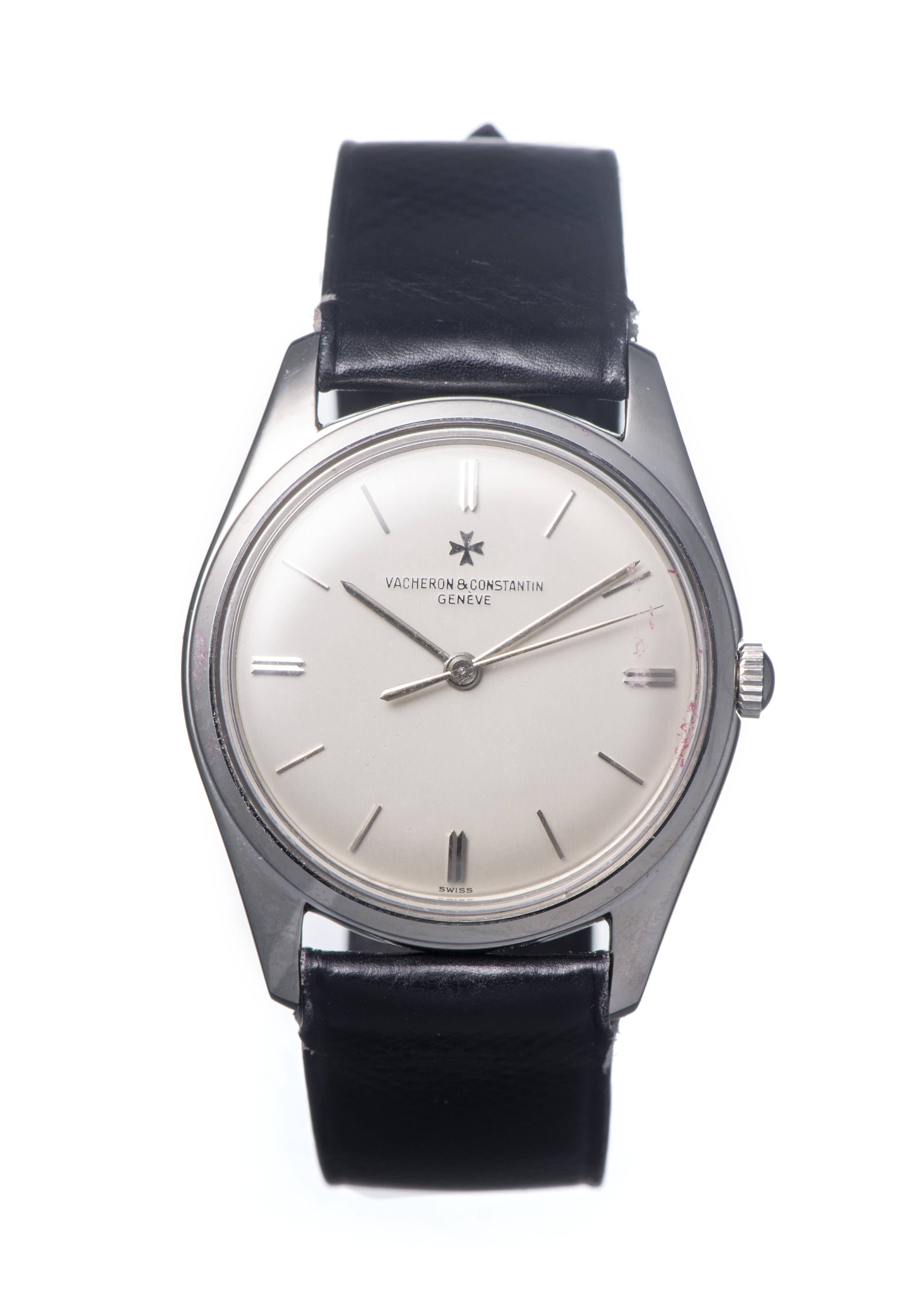 VACHERON CONSTANTIN - montre-bracelet à boîte en acier inox vers 1960, cadran argent, index et aiguilles bâton, seconde centrale, mouvement mécanique extra-plat modèle 6509. Bracelet cuir Vacheron, boucle ardillon anonyme.