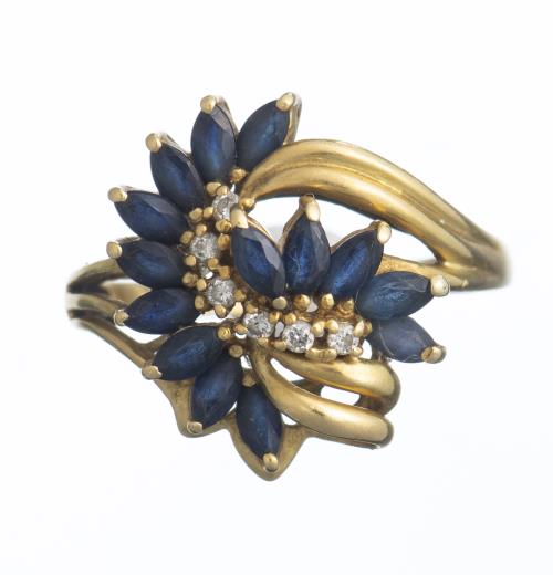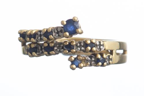 Bague saphir en or blanc et or jaune sertie de 9 saphirs intercalés de griffes blanches