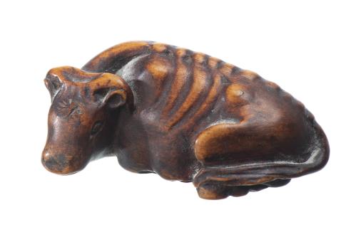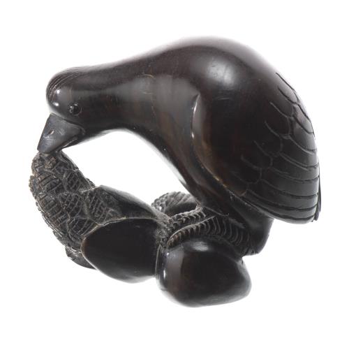 JAPON - Meiji - Netsuke en bois représentant un crapaud