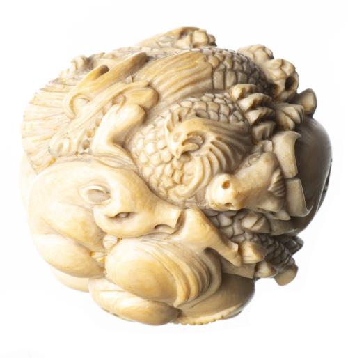 JAPON - Meiji - Netsuke sculpté en ivoire représentant deux…