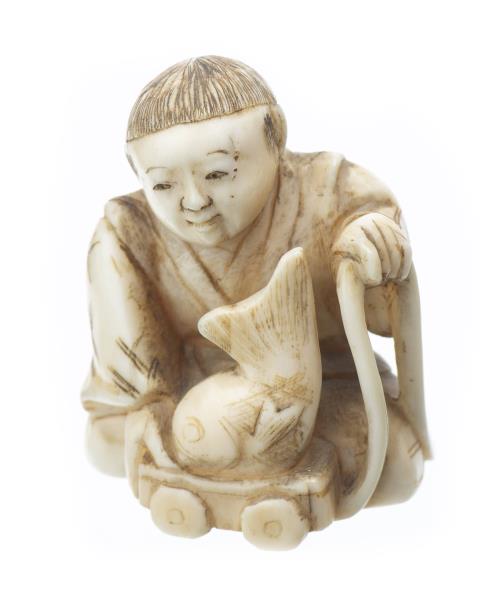 JAPON - Meiji - Netsuke en ivoire représentant un enfant