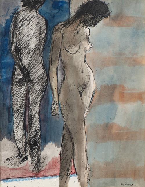 Guy BARDONE (1927-2015), "Nu féminin", encre et aquarelle