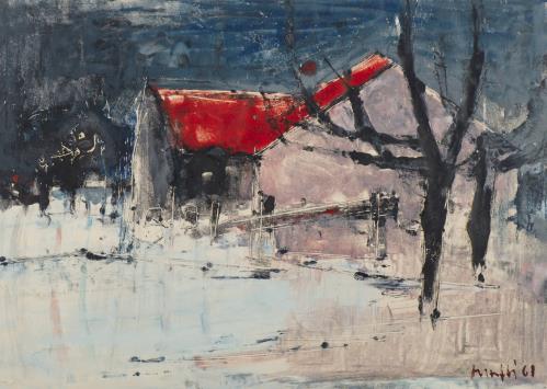 Walter MAFLI (1915 - 2017), Maison au toit rouge, technique mixte