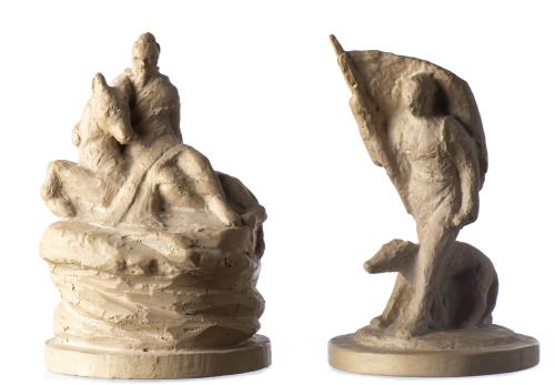Frédéric SCHMIED (1893-1972), "Deux pièces d'échec en plâtre", modèle pour un jeu exécuté en bronze