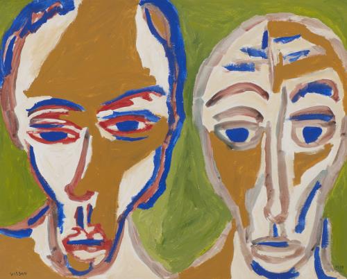 Etienne DELESSERT (1941-2024), 'Visages de profil', technique mixte