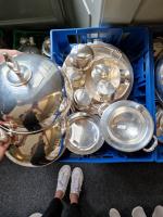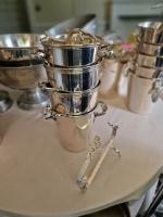 20 cloches de chef et 18 petites casseroles de présentation en métal argenté