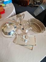 10 poêles de présentation et leurs couvercles en métal argenté "Silinax"