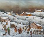 ART DIT NAÏF - Jakob BINDER (1928-1999), "Journée d'hiver", 1982, huile sur carton sbd
