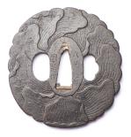 JAPON - Tsuba maru gata circulaire en métal décoré de vagues, Epoque Edo
